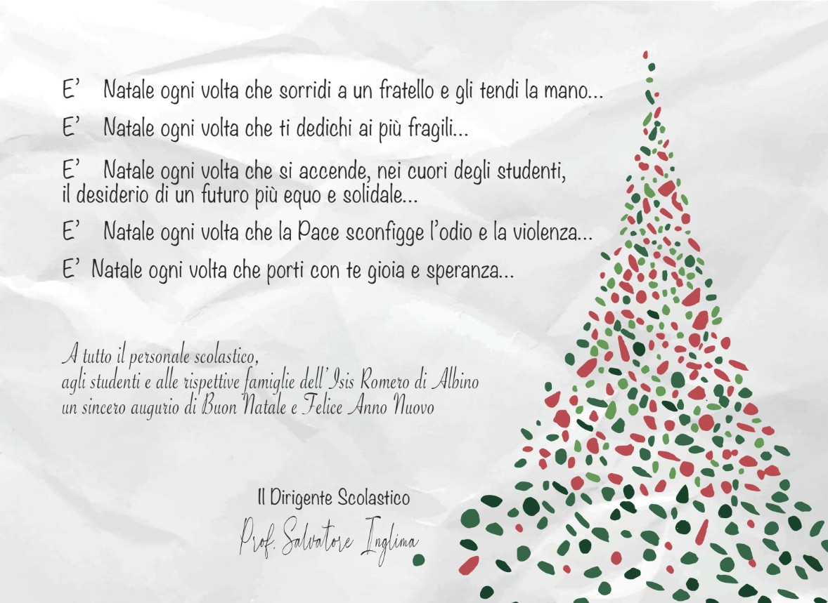 Gli auguri di buon Natale e felice anno nuovo dal dirigente prof Inglima a personale, studenti, genitori